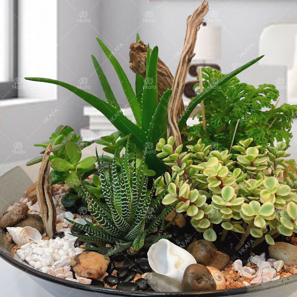 玻璃盆景屬自我循環的生態系統,多肉植物容易打理,毋需太多料理工夫便能輕易點綴生活與工作環境,更可發揮創意加入公仔等創作出個人小天地!
