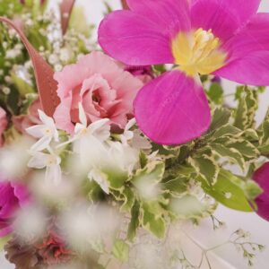 In this session, you will learn to create a trendy Floral Arrangement in Handbag in our Spring Summer colour palette revolving light pinks and purples. We will share how to condition flowers, basic floral knowledge and top tips in a relaxing floral arrangement.